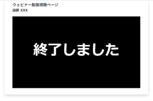 ウェビナー終了時間が過ぎていた場合、「終了しました」表示となります。