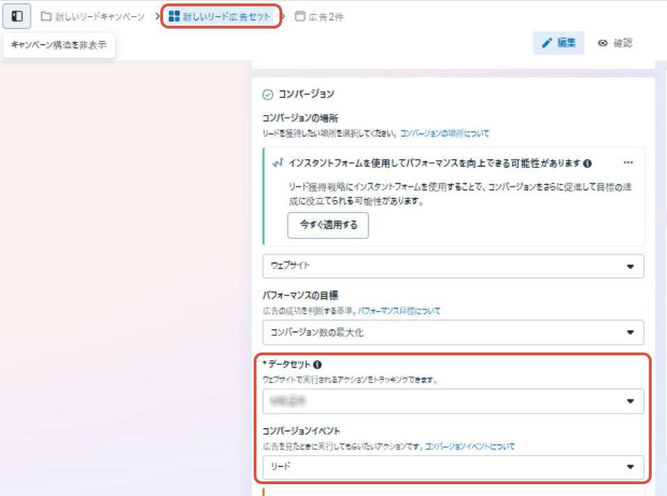 広告セット>編集 >【コンバージョンイベント】