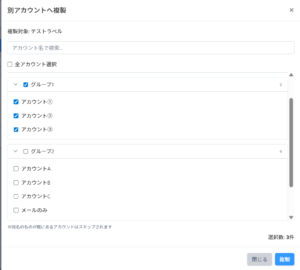 「別アカウントへ複製」では、複製先の配信アカウントを複数選択できます。