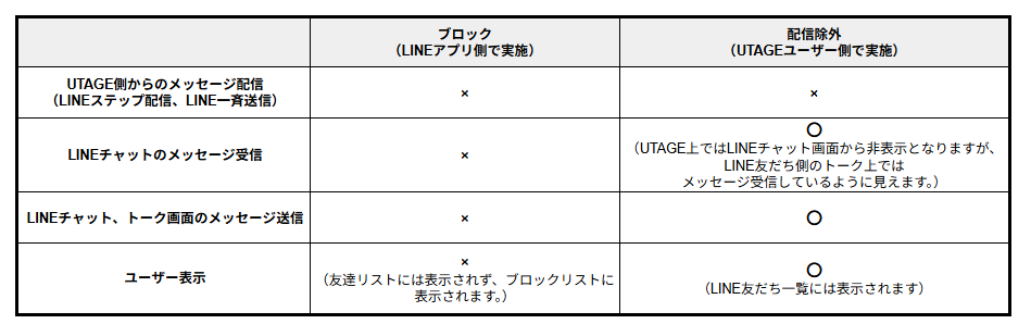 ※LINE配信における「配信除外」と「ブロック」についてですが、