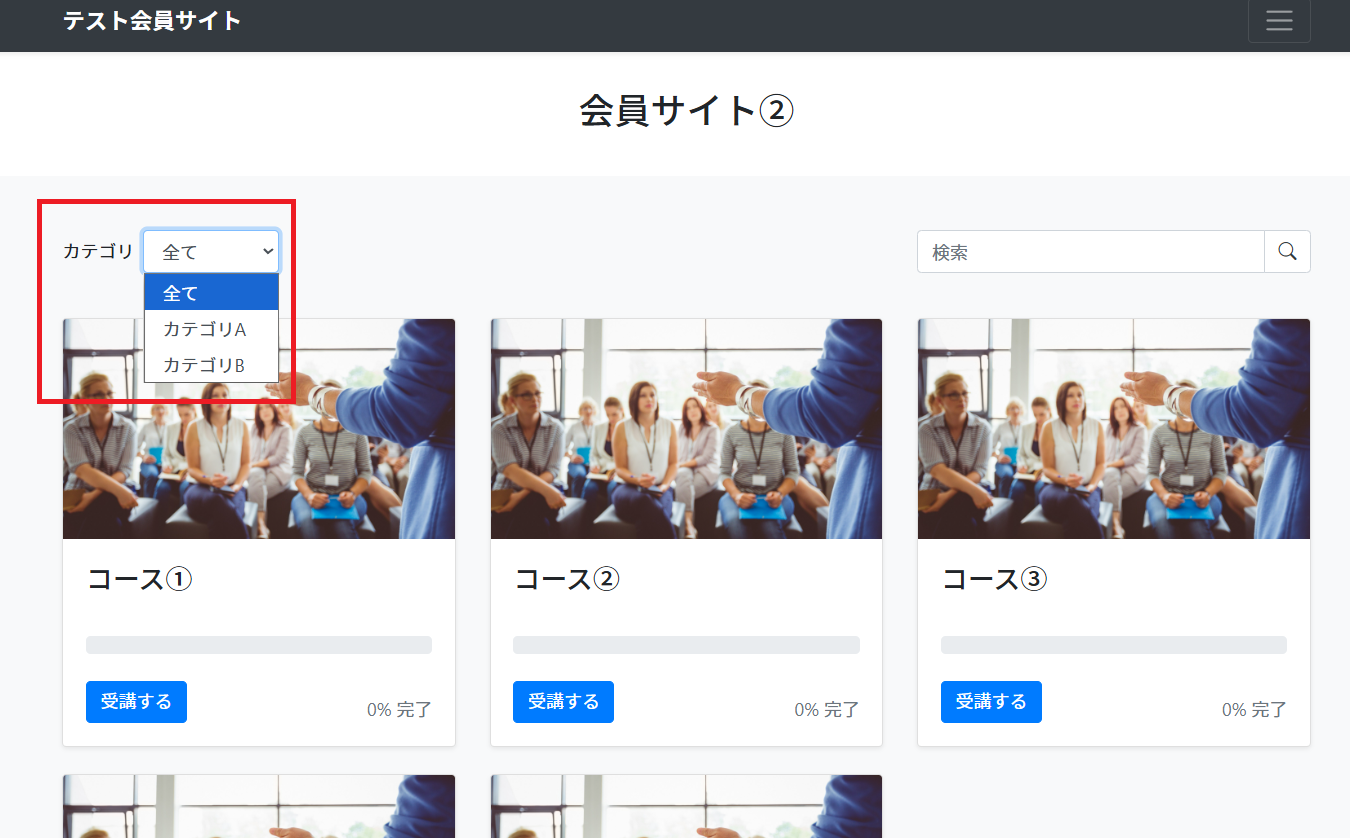 これにより、会員サイト上ではカテゴリ別に絞り込みが可能となります。