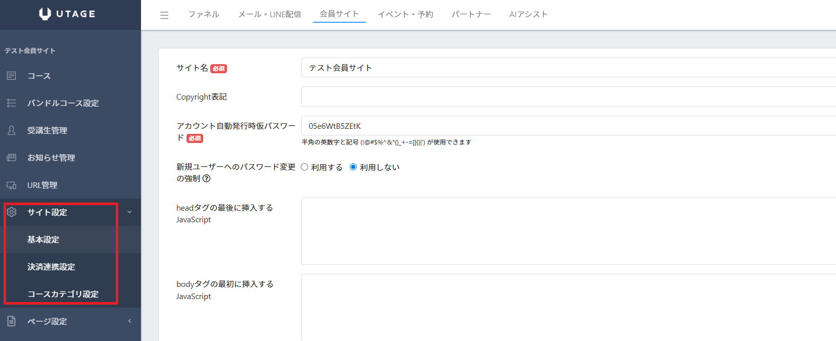 会員サイトのサイト設定