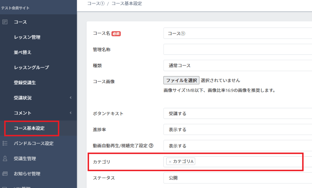 コースカテゴリ設定