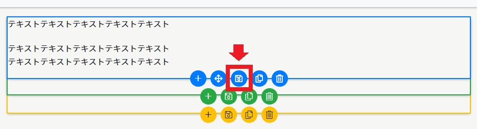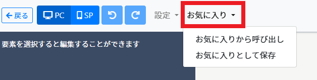 お気に入りに保存したい要素/行/セクションの保存マークをクリックで保存可能です。