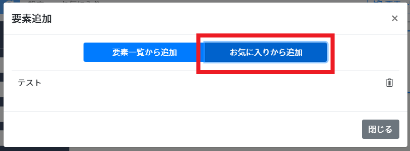 よく利用する要素を【お気に入りとして保存】しておくことで、