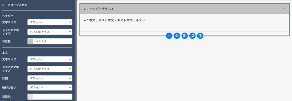 詳細はファネルページの構成要素(セクション/行/要素)の使い方をご参照ください。