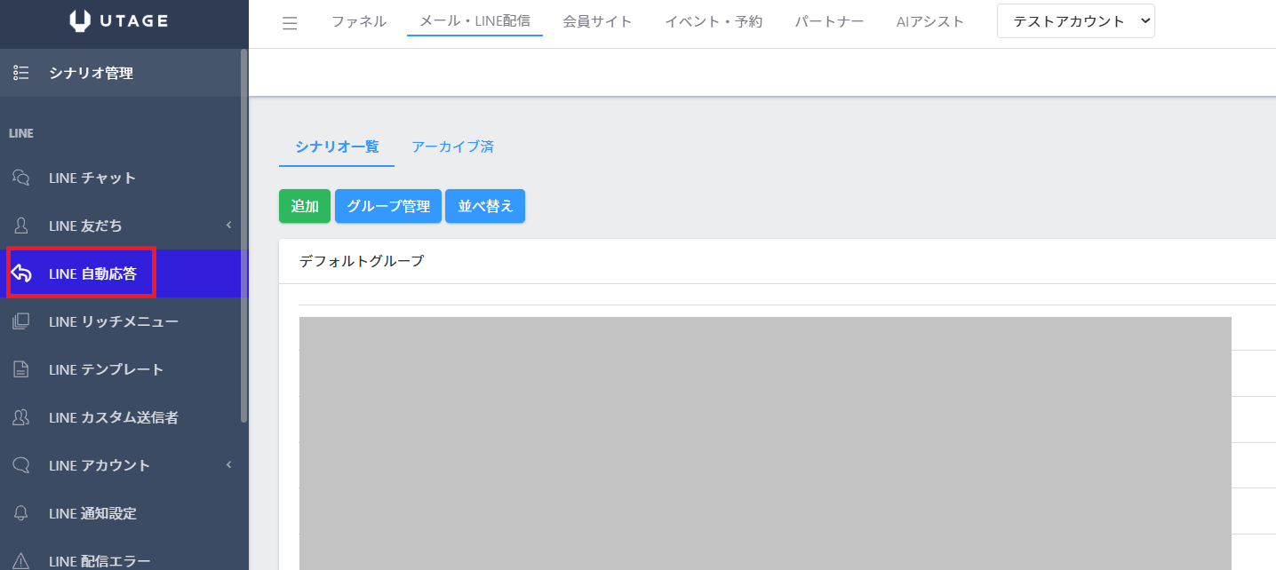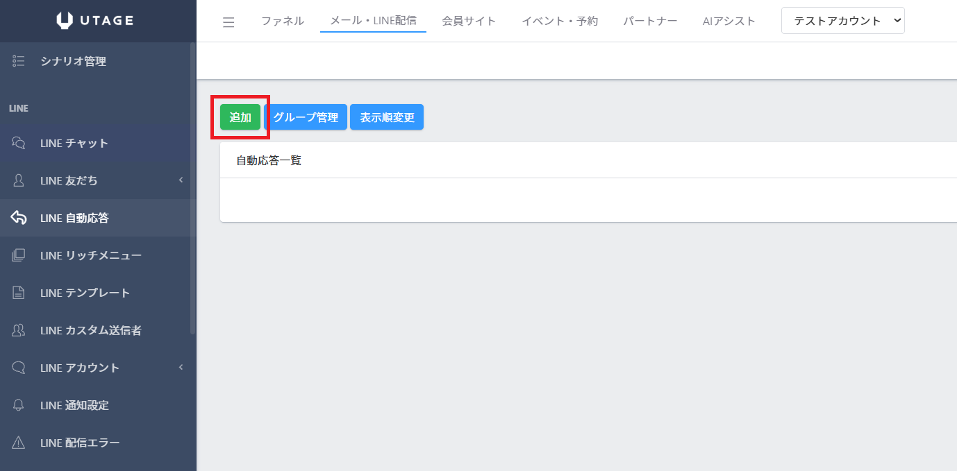左メニューの【LINE 自動応答】をクリックします。