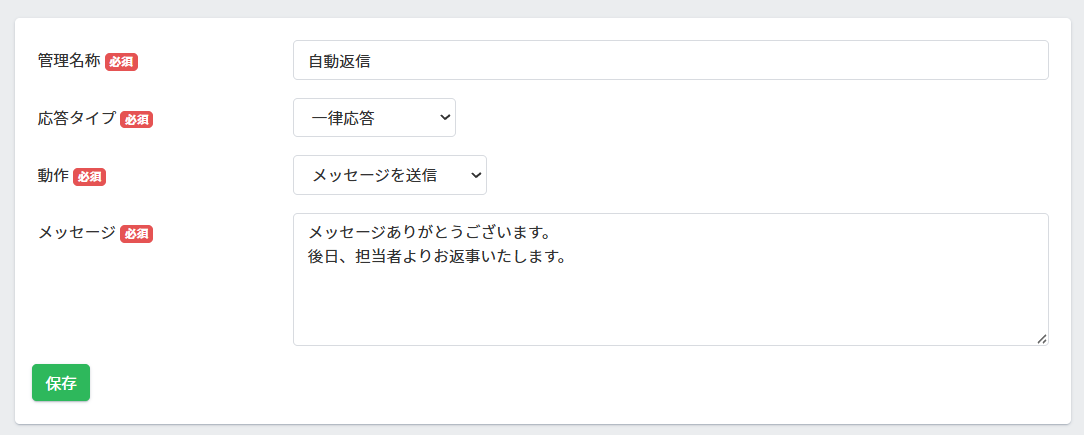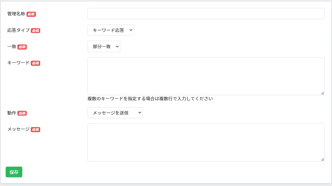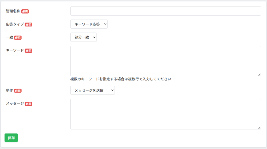 ■応答タイプ:「キーワード応答」「一律応答」より選択できます。