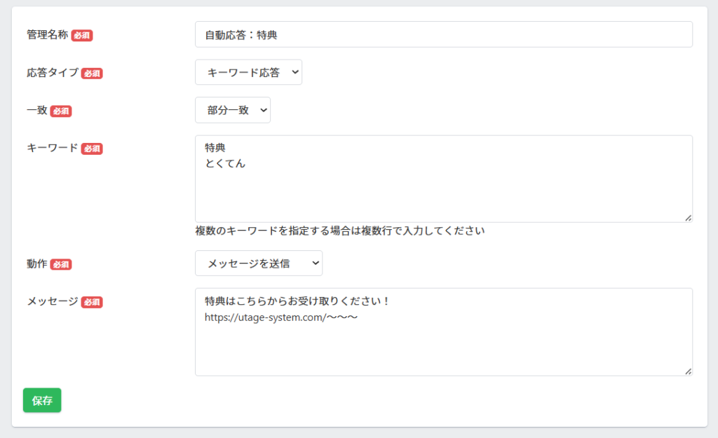 特定のキーワードが送られてきたら特典を自動で送る(動画の視聴特典など)