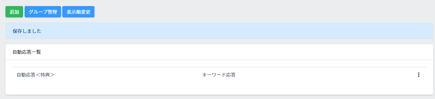 【表示順変更】から作成済みの自動応答の表示順の並べ替えが可能です。