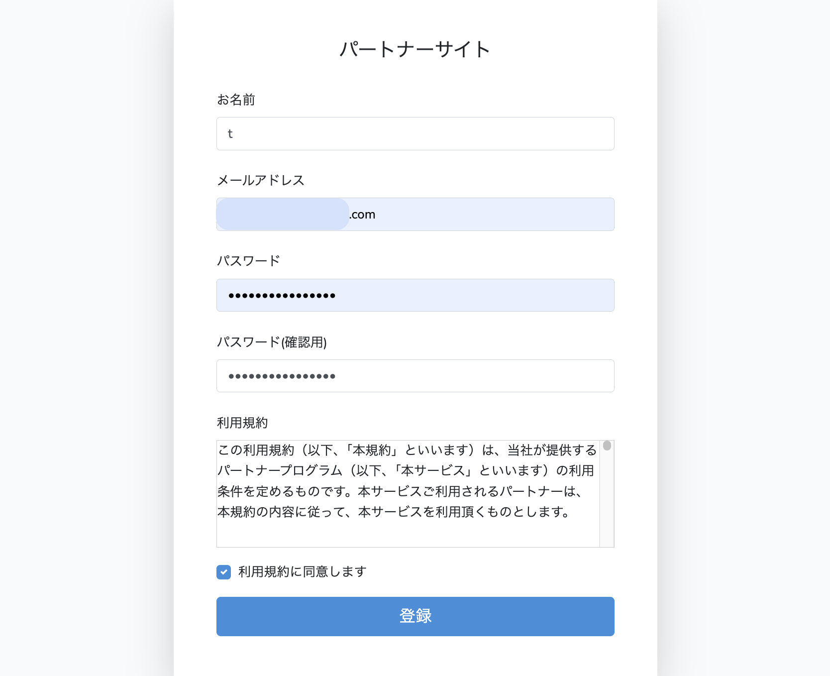 作成したパートナーグループの登録URLをパートナーに案内し、