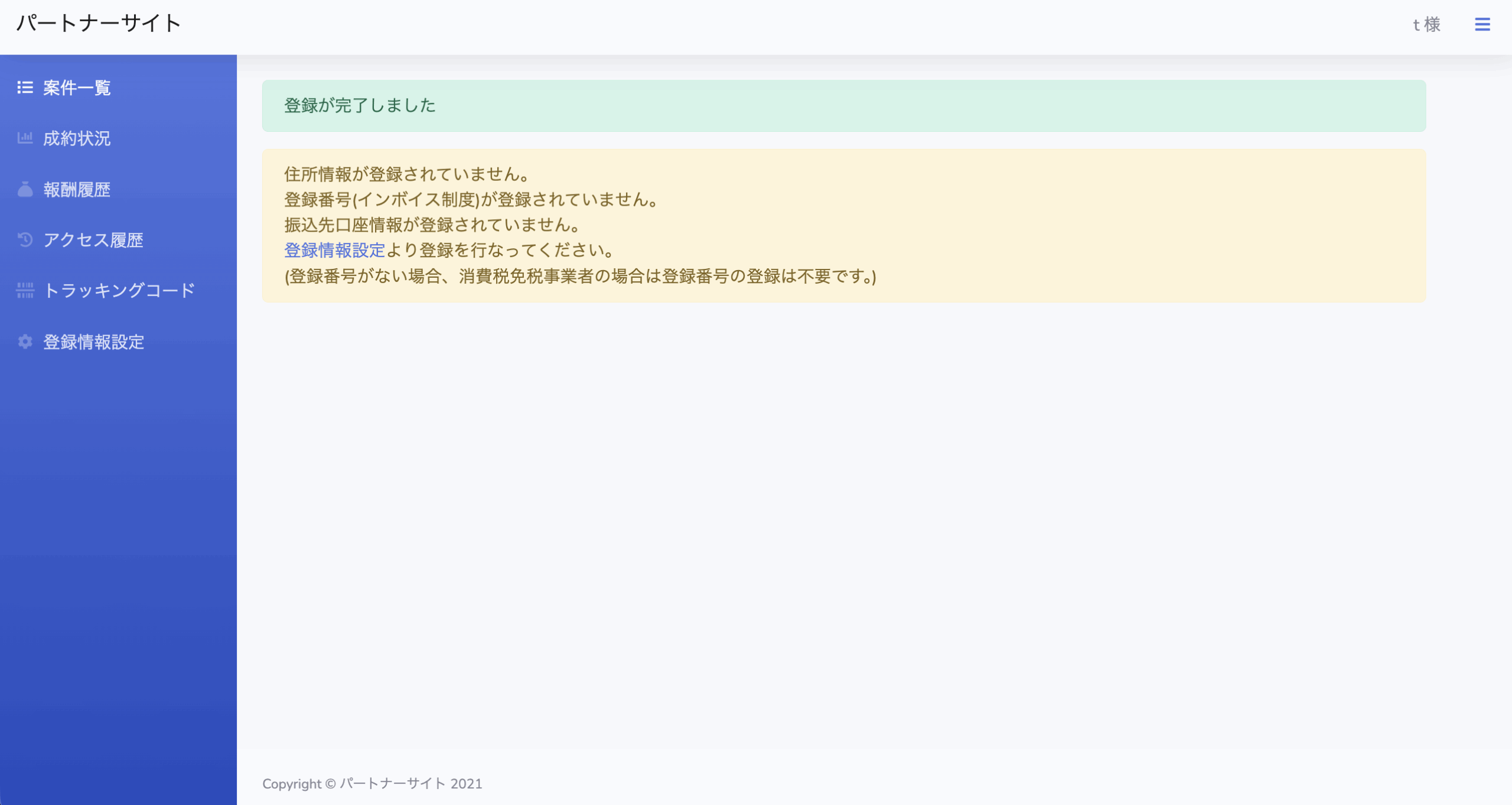 登録後にアクセス可能なパートナーサイトの「案件一覧」にて