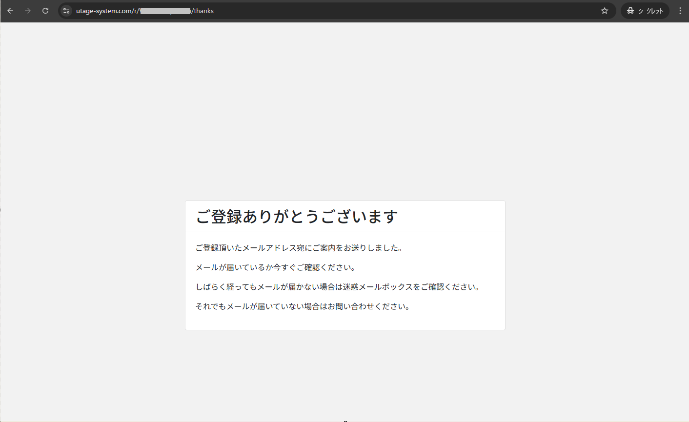※登録フォーム自体は表示されず、サンクスページが表示されます。