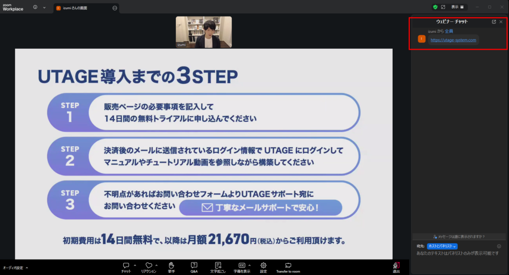 ① UTAGE有償オプション契約「Zoom自動ウェビナー機能(β版)」※事前審査あり