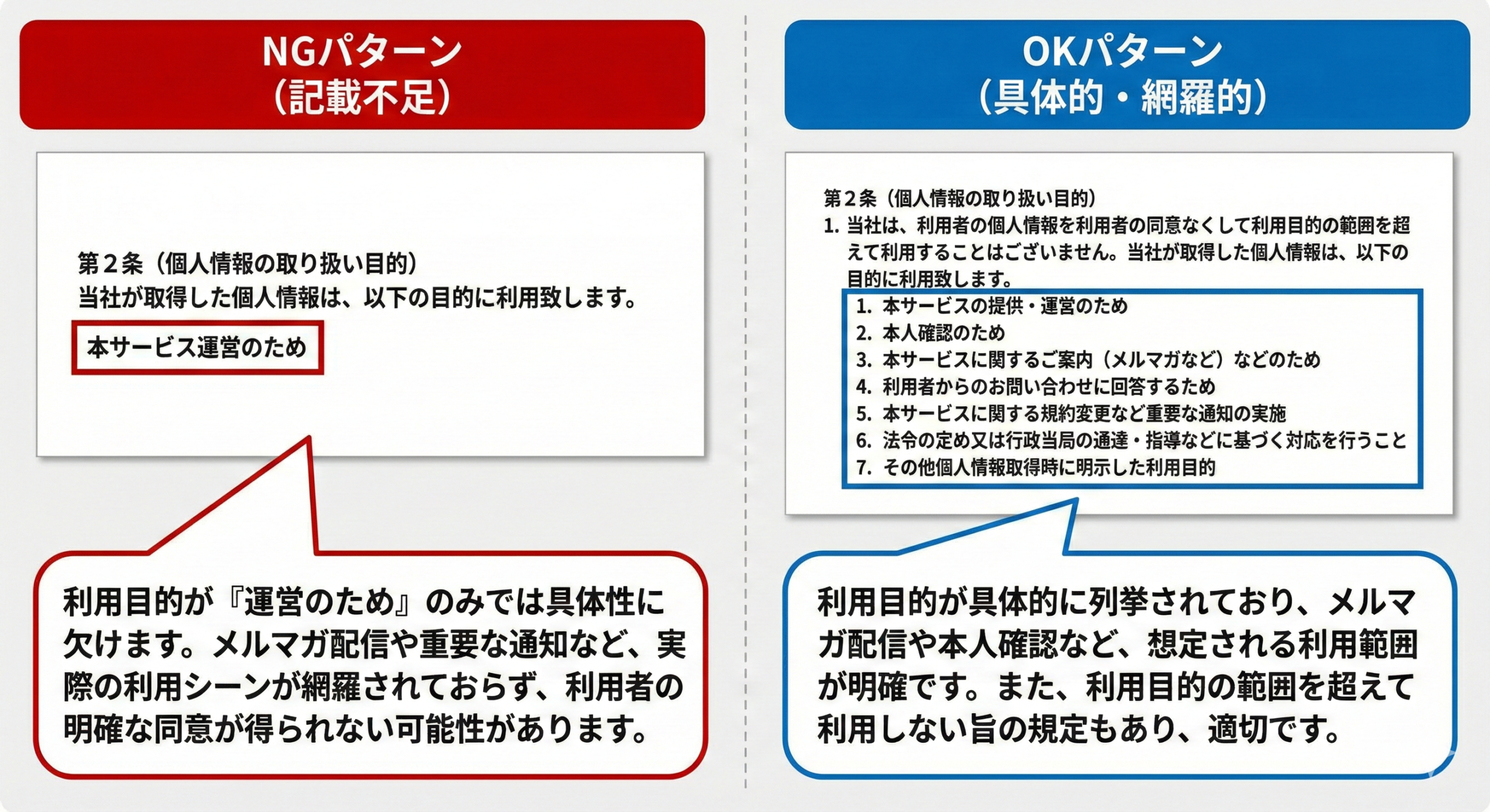 単に「サービスの提供のため」だけでは不十分です。