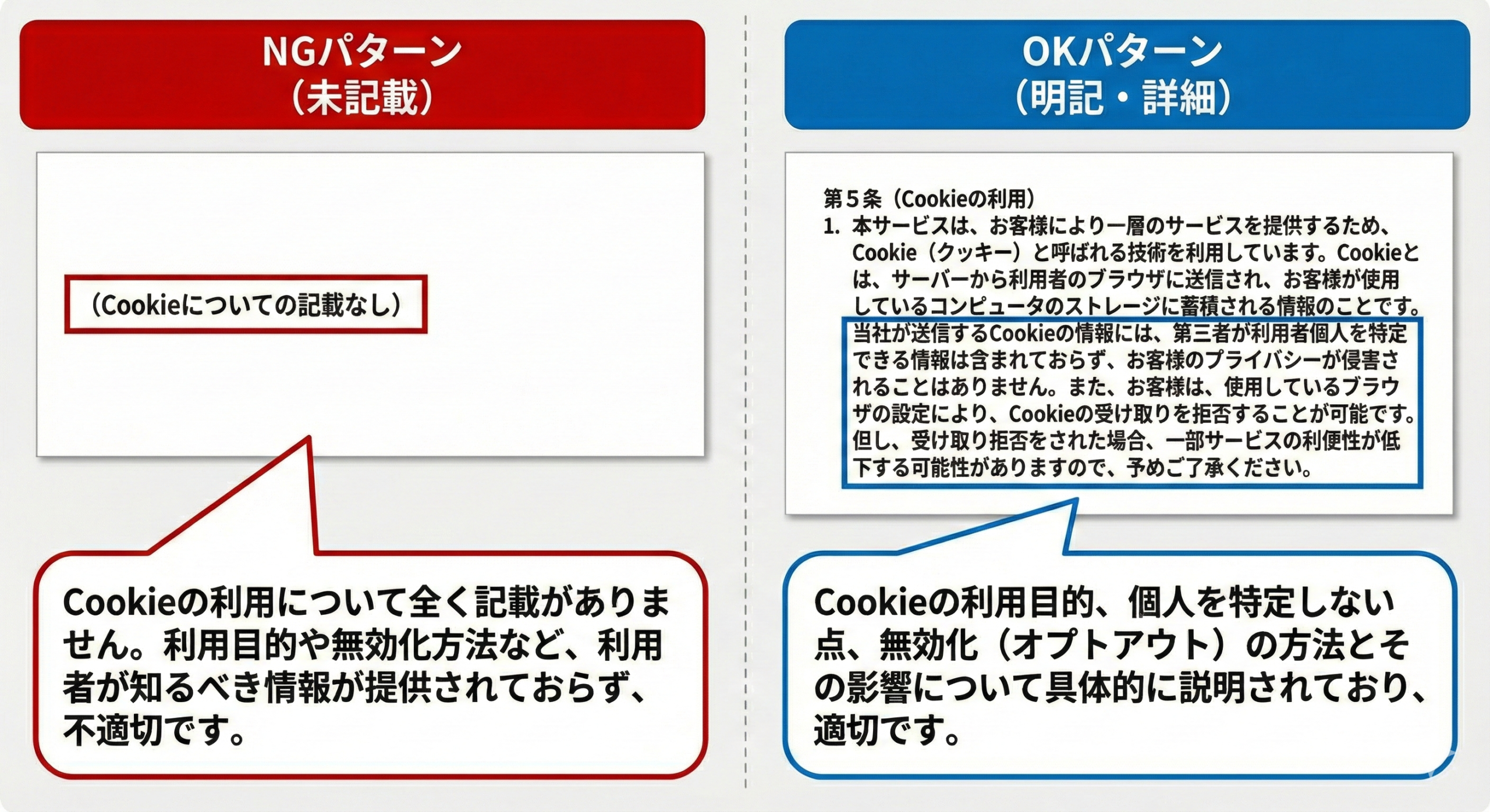 • Cookie(クッキー)の説明不足: