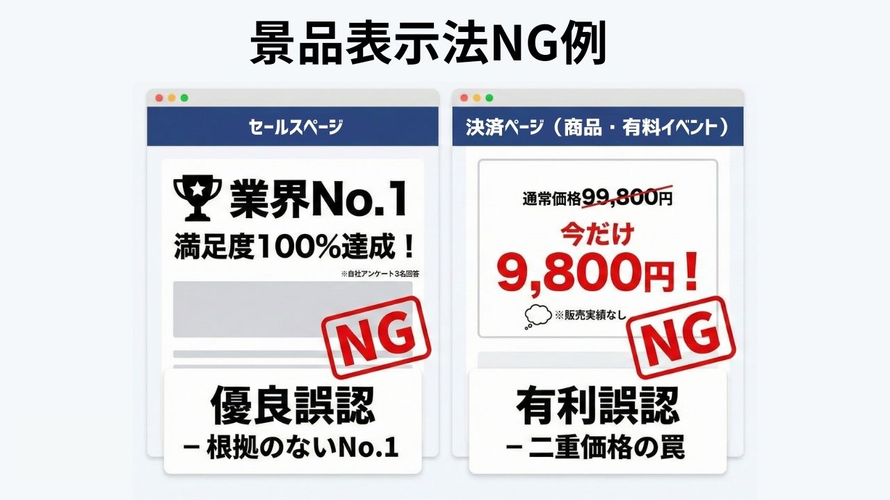 違反時には、購入者からの大規模な返金要求や、Meta広告・Google広告等のアカウント停止の対象となります。