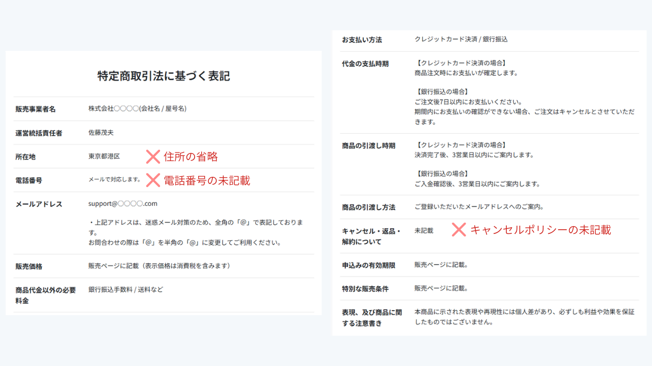 ▼特定商取引法に基づく表記のNG例