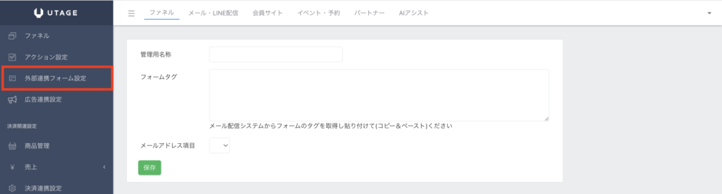 外部連携フォーム設定とは、外部のメール配信サービスと連携できる機能です。