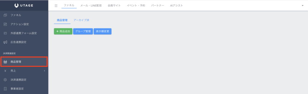商品管理とは、UTAGE内で決済可能な商品を登録・管理する機能です。
