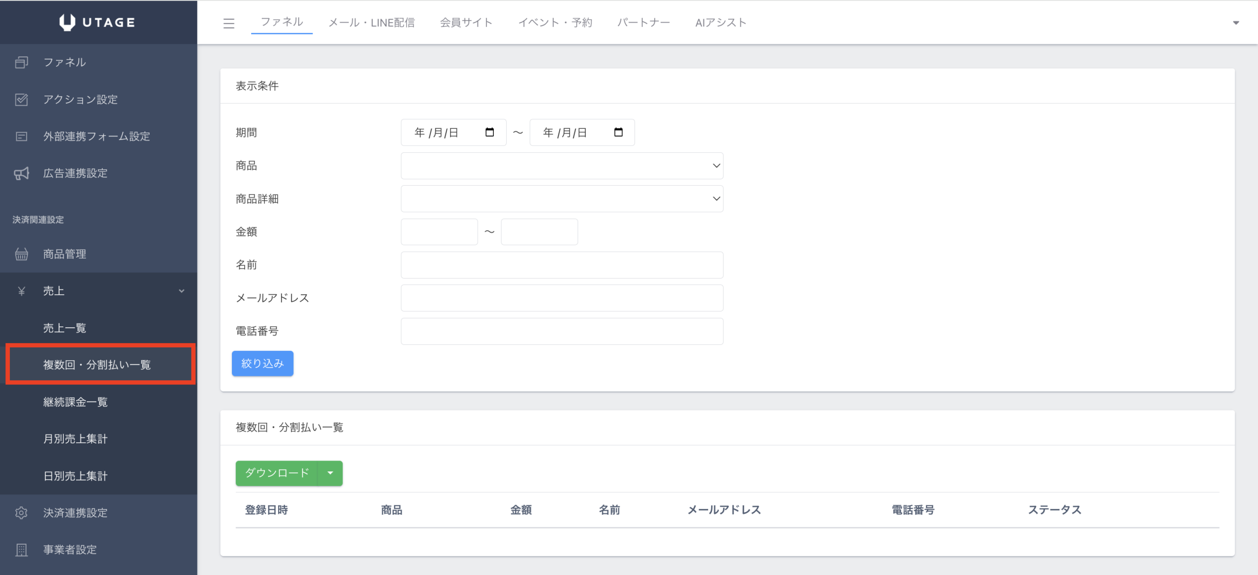複数回・分割払いや継続課金払いといった決済種別ごとの顧客抽出、