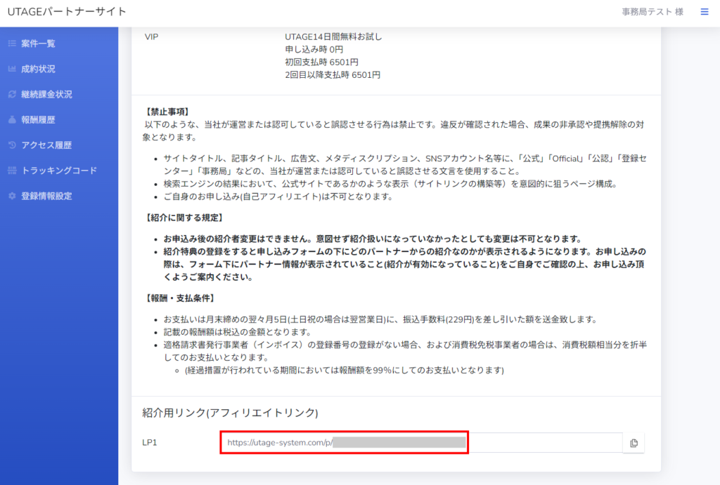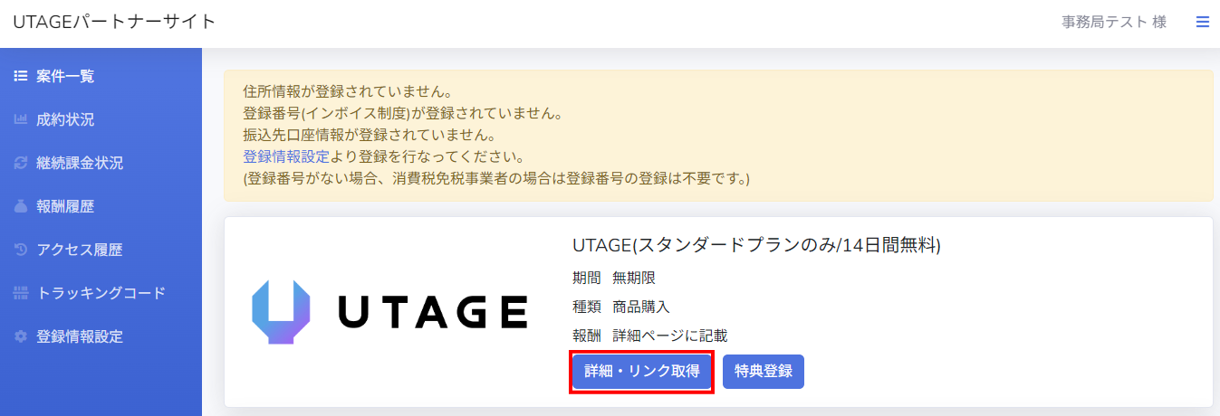 UTAGE紹介制度(パートナー)未登録の場合は、下記ページより無料登録していただけます。