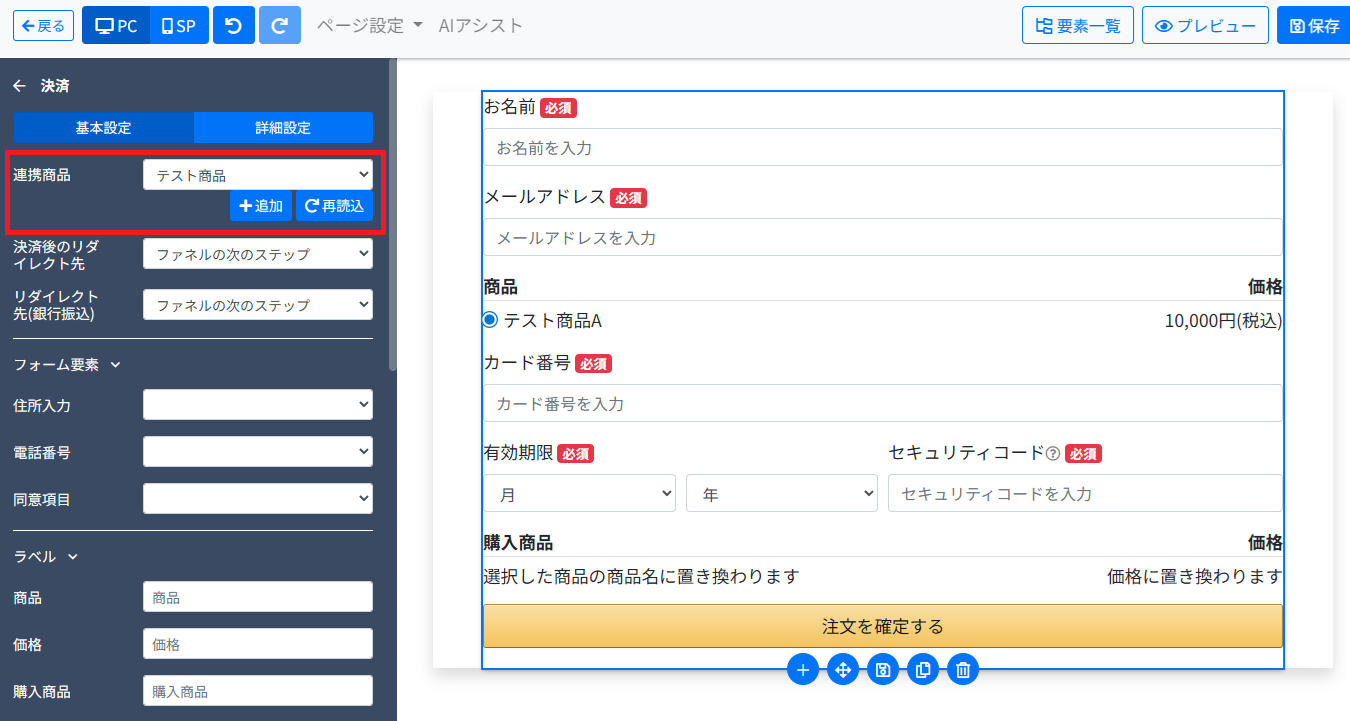 お客様が商品を購入するための販売ページをファネルで作成し、