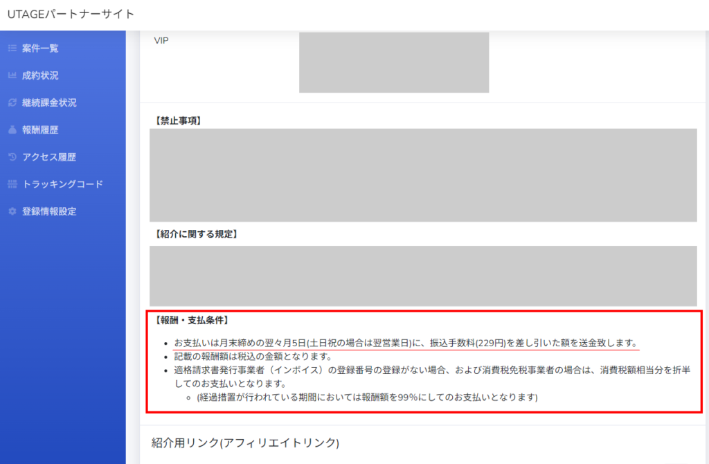 UTAGE紹介制度(アフィリエイト)の報酬支払日は、