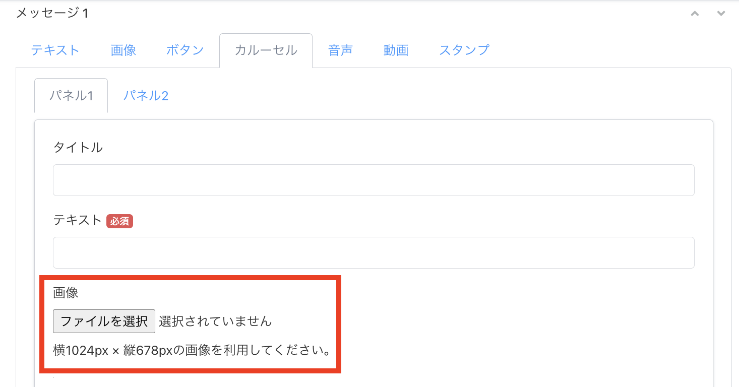 ③LINEテンプレートのカルーセル画像が添付されていない