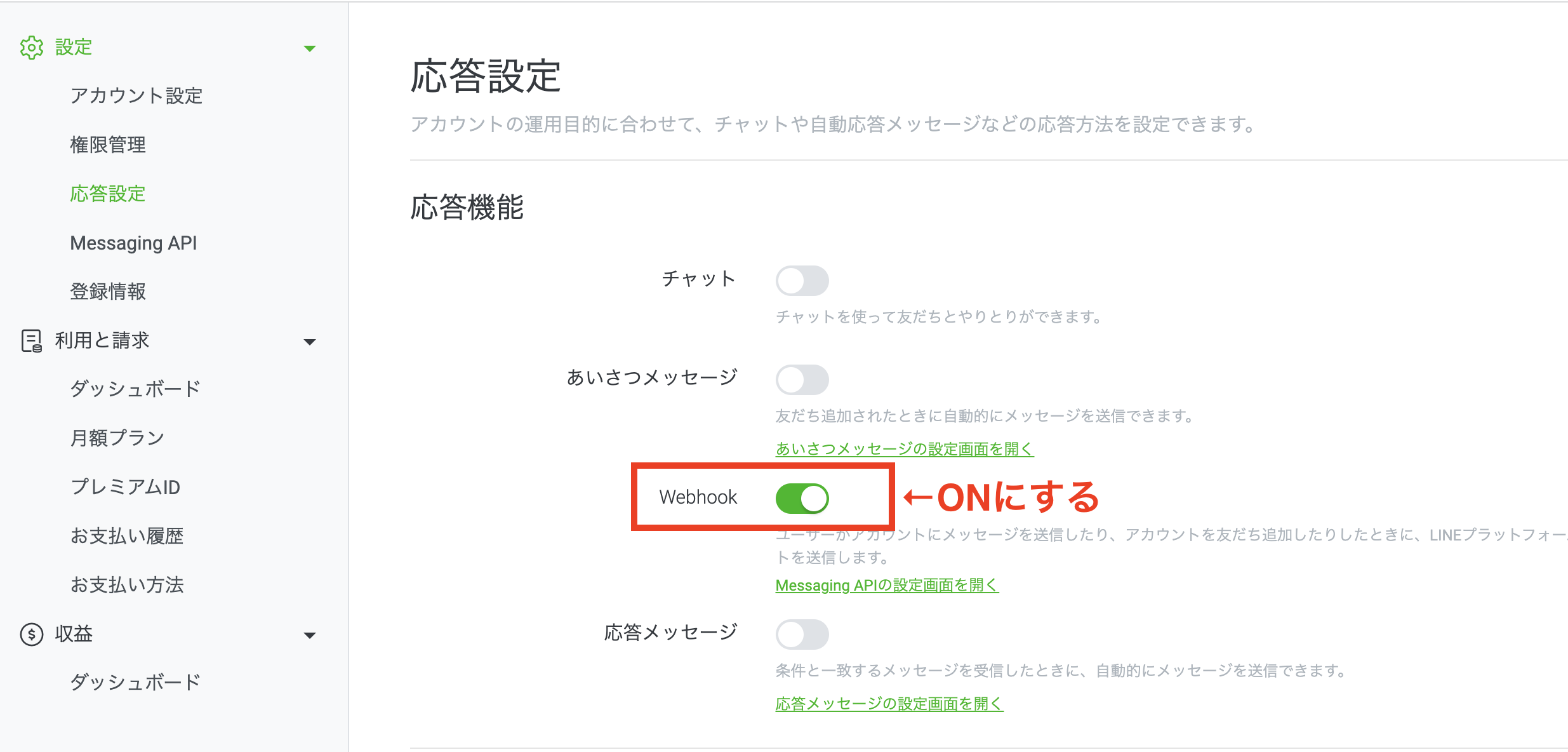 **「Webhook」を必ず「オン」**にする必要があります。