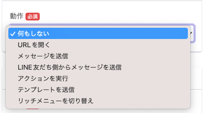 動作「何もしない」設定時にリッチメニューのエリアをタップしても、