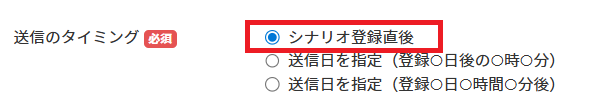 2. 【送信タイミング】「シナリオ登録直後」に設定します。