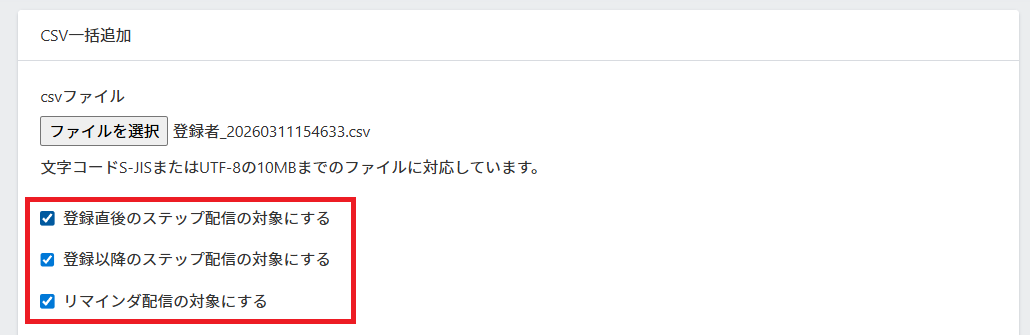 【登録直後のステップ配信の対象にする】は必ずチェックしてください。