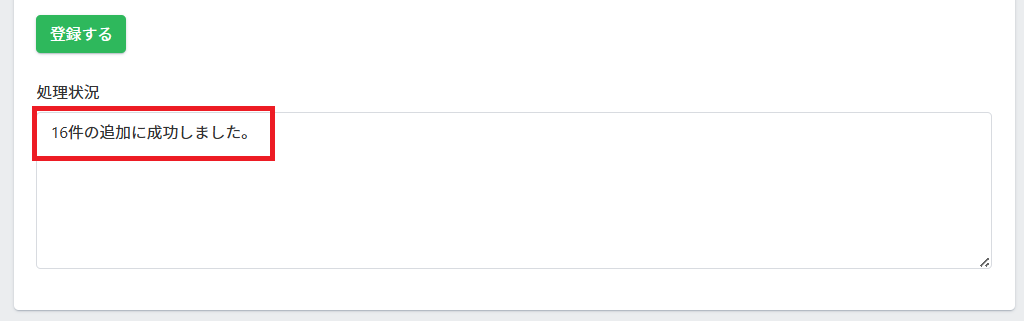 5.追加が完了すると「処理状況」ウィンドウにメッセージが表示されます。