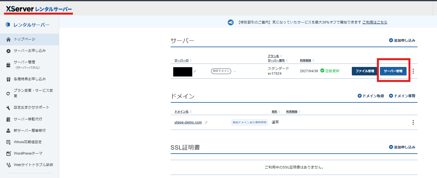 ※ 以下はエックスサーバー(外部サービス)での操作です。外部サービスの画面は予告なく変更される場合があります。