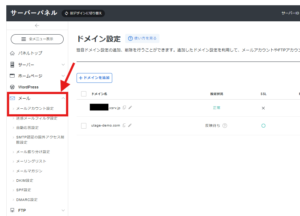 1. サーバーパネルの左メニューの【メール】の項目にある【メールアカウント設定】をクリックします。
