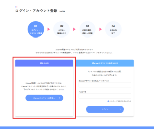 1. 【ログイン・アカウント登録】画面が表示されます。初めてXServerをご利用の方は、左側の「初めての方」にある【XServerアカウントの登録へ】をクリックします。