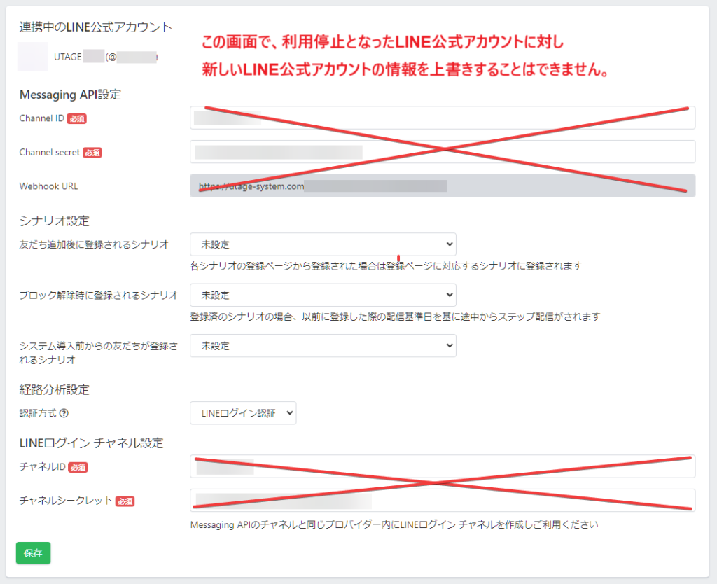 アカウントBAN等で新たなLINE公式アカウントを連携したい場合には、