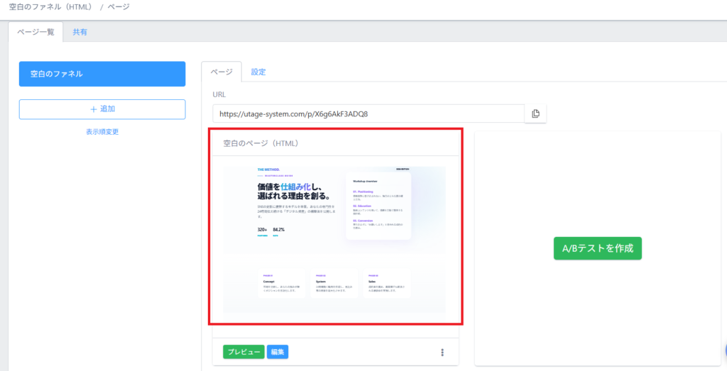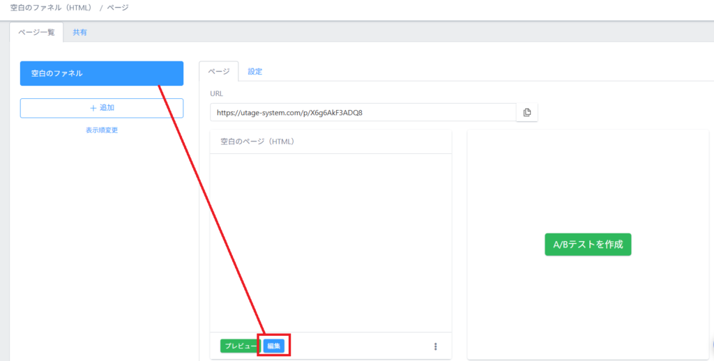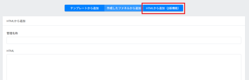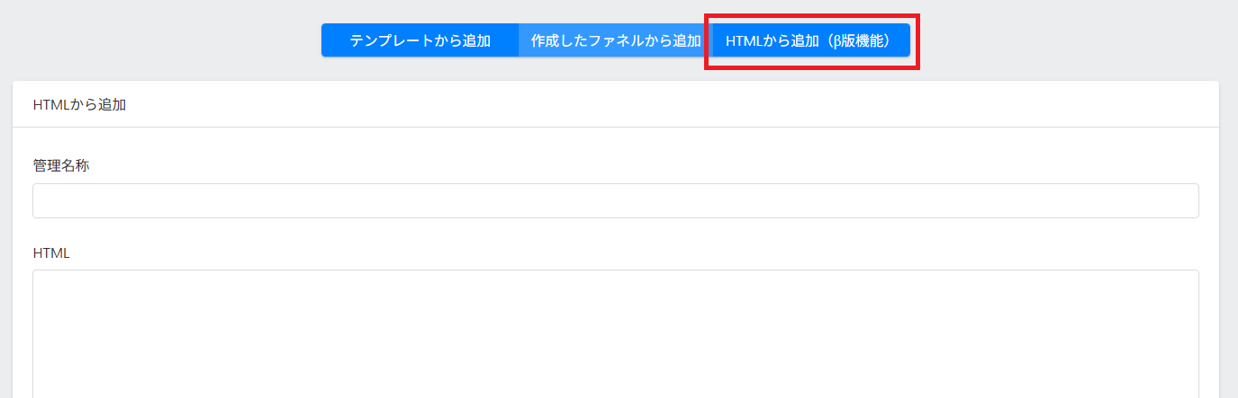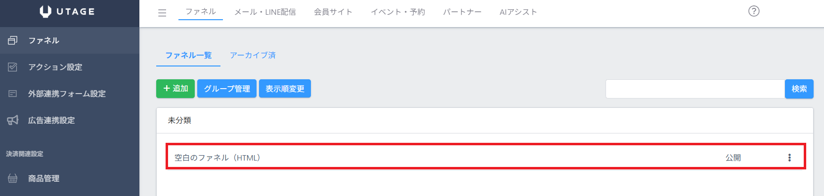 4.ファネル一覧に【空白のファネル(HTML)】が追加されるのでクリックします。