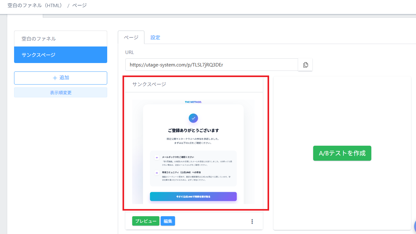 3.ファネルステップが追加されますので「+ページ追加」をクリックします。