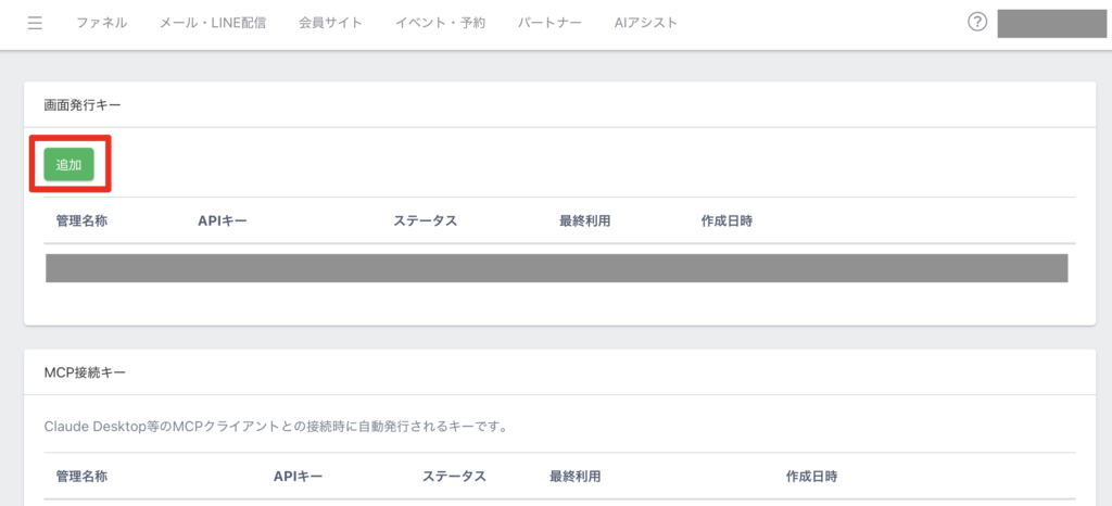MCP接続キーの追加方法