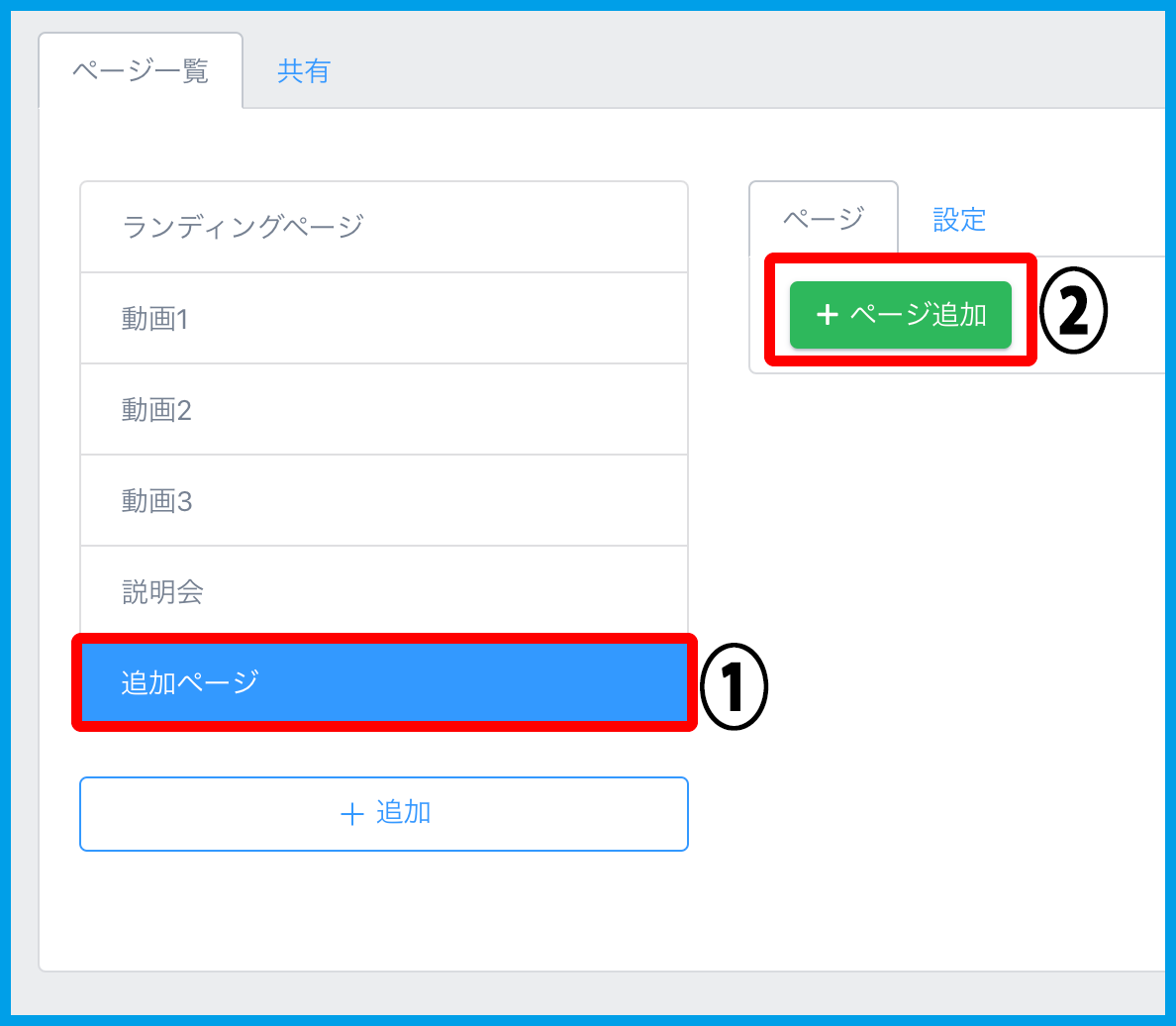 4.追加されたページを選択し【+ページ追加】をクリックします。