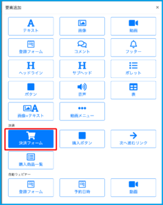 9..ページ編集画面にて「決済フォーム」を追加したい場所の【+】をクリックします。