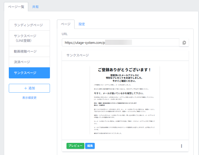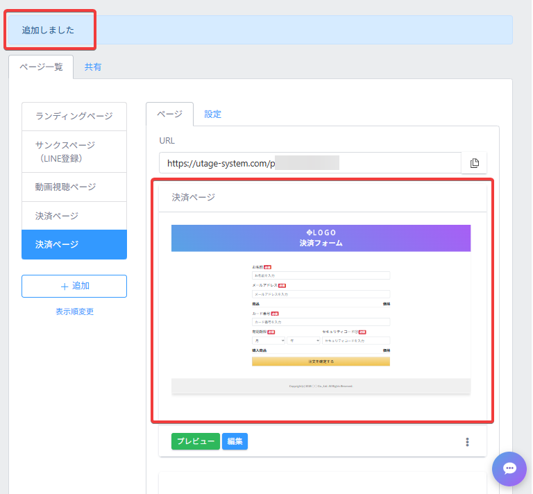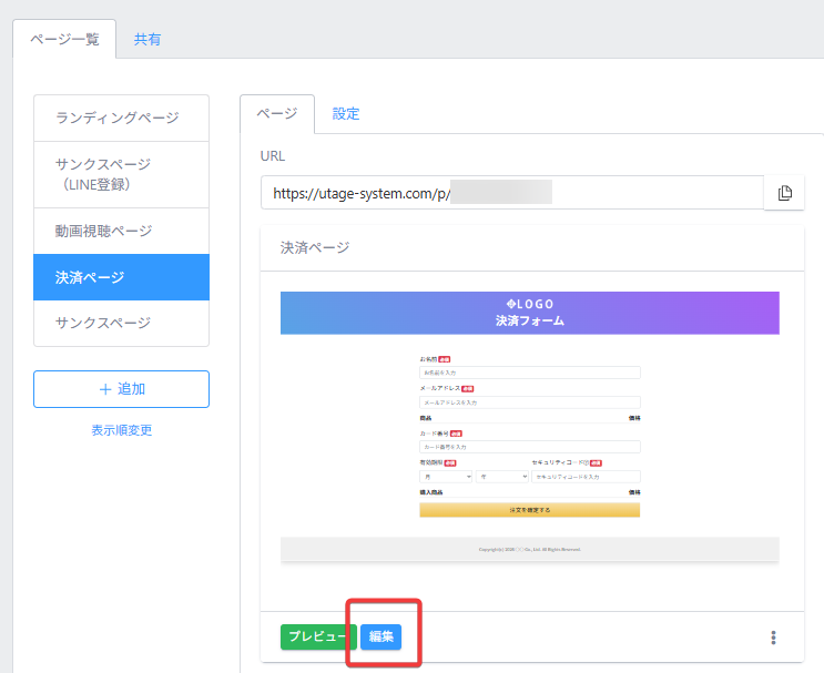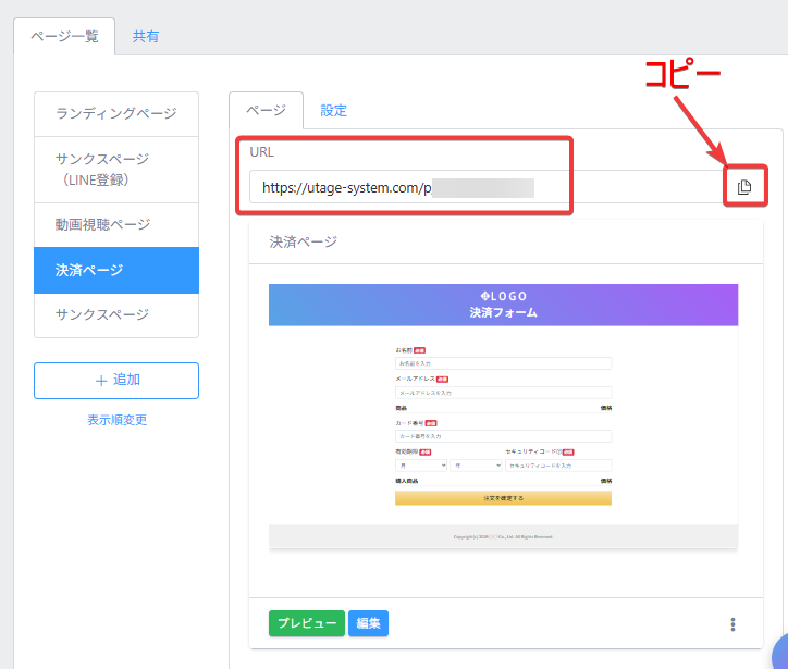 UTAGEでは直接的な『リンク』を生成するのではなく、決済ページを作ってそのURLを利用します。