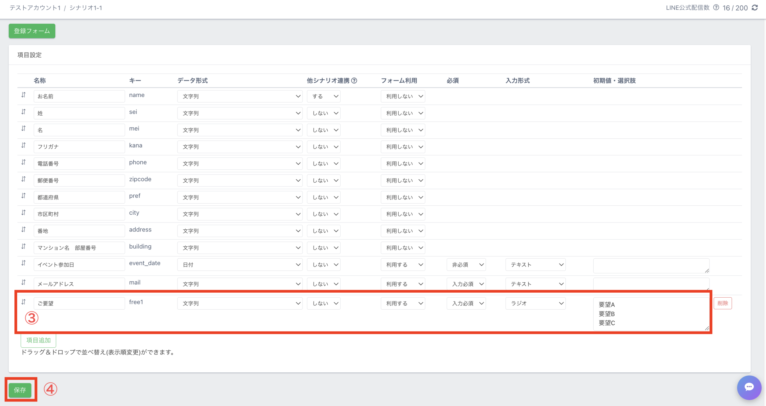 登録フォームやシナリオ内アンケートを作成するシナリオを作成します。