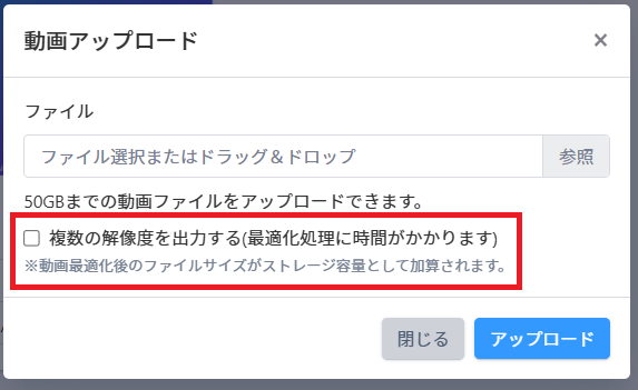 ※50GBまでの動画ファイルをアップロードできます。