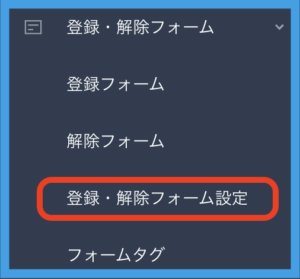 2.左メニュー【登録・解除フォーム】をクリックし、展開されるメニューから【登録・解除フォーム設定】をクリックします。