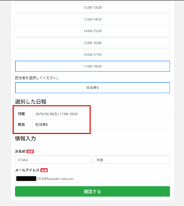 上記の設定が完了しましたら、『申込フォーム』より日程表示内容を確認してみましょう。