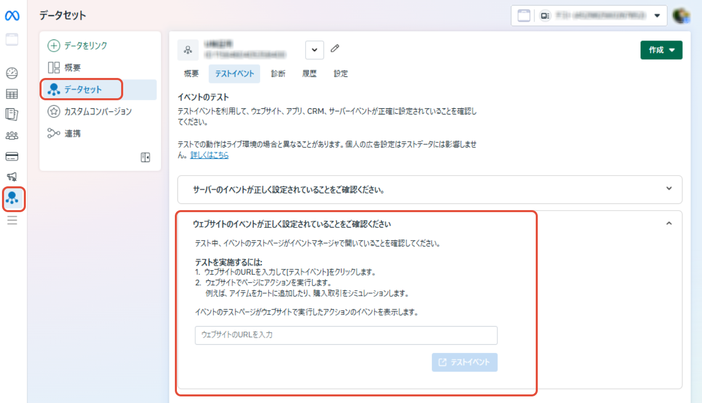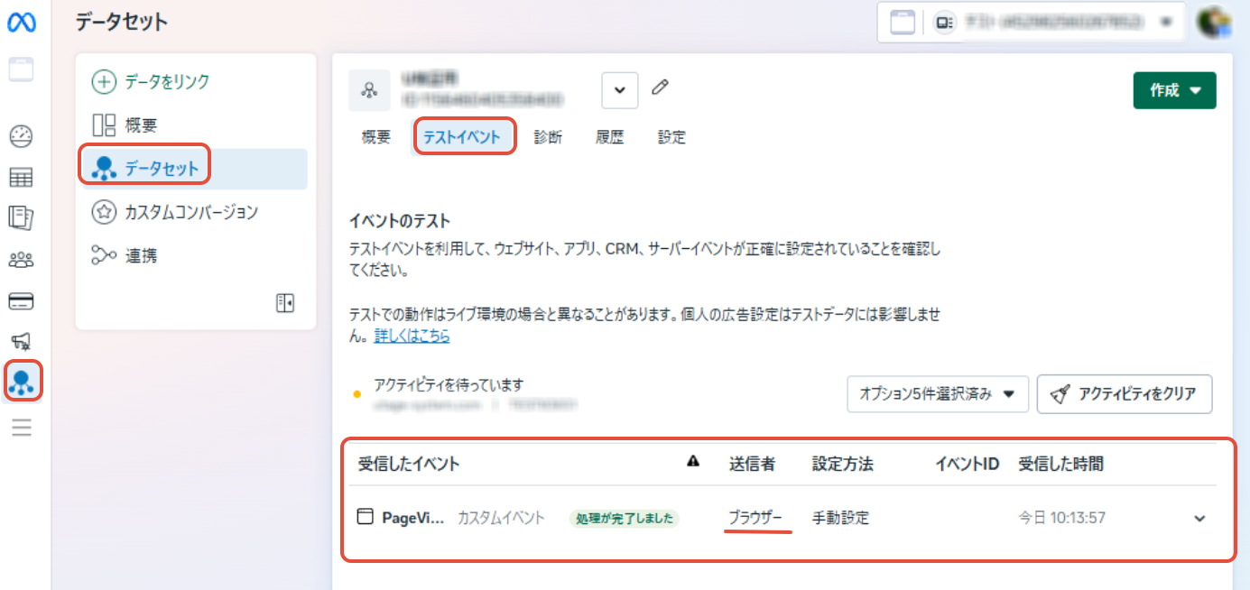 2.Meta側でデータセット >テストイベント >