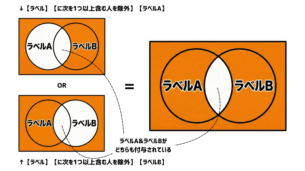 【ラベル】【に次を1つ以上含む人を除外】【ラベルB】→配信対象外